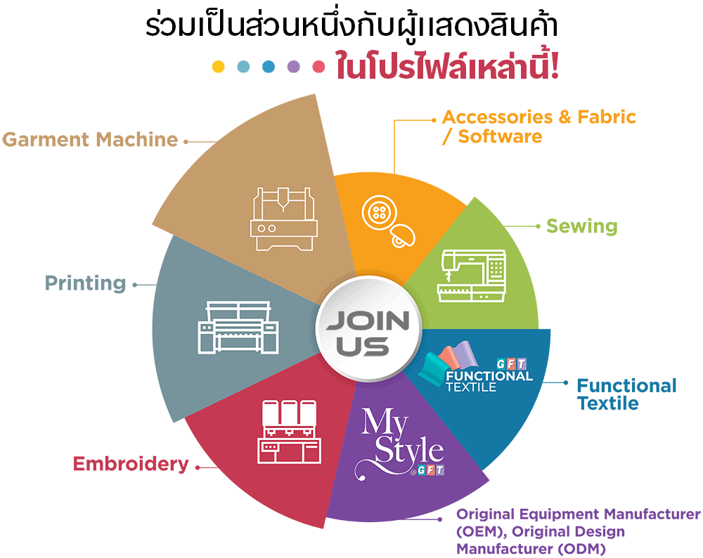 จีเอฟที คือเวทีนัดพบที่ผู้ผลิต เจ้าของแบรนด์ และซัพพลายเออร์ที่ขับเคลื่อนอนาคตเครื่องนุ่งห่มและสิ่งทอไว้ใจในการค้นหานวัตกรรมและบริการที่ตรงความต้องการ นี่คือมหกรรมที่ผู้ให้บริการเทคโนโลยีและผู้รับช่วงผลิต OEM เช่นคุณสามารถพลิกการเชื่อมต่อให้เป็นโอกาสและความได้เปรียบทางธุรกิจ จองพื้นที่แสดงสินค้าวันนี้เพื่อเชื่อมต่อกับผู้ซื้อคุณภาพ ค้นพบพันธมิตรทางการค้าใหม่ และเติบโตไปพร้อมคอมมูนิตี้ที่ร่วมถักทออุตสาหกรรมเครื่องนุ่งห่มและสิ่งทอแห่งอนาคต!
