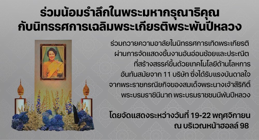 ร่วมเปิดงานด้วยการแสดงเทิดพระเกียรติสมเด็จพระนางเจ้าสิริกิติ์ พระบรมราชินีนาถ พระบรมราชชนนีพันปีหลวง โดยคณะลิเกของ ไชยา มิตรชัย ก่อนรับฟังปาฐกถาพิเศษโดย ดร.ณัฐพล รังสิตพล ปลัดกระทรวงอุตสาหกรรม